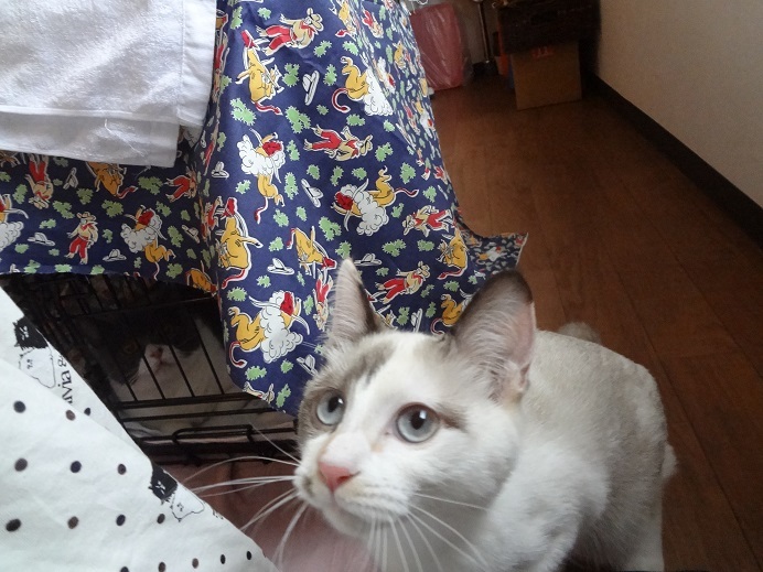 | 特徴(性格など) | シャムMIX。淡いブルーの目が印象的な女の子。 もこもこ!ふっかふかの触り心地です。 しっぽは短め。あどけない可愛い顔をしています♪ 姉妹猫と一緒に毎日大運動会 とっても元気で縦に横にぴょんぴょん走り回っています。 仔猫と遊びたい! という方にぴったりです。 食事:ドライフード トイレ:失敗なし エイズ・白血病:陰性 |