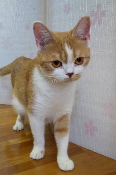 | 特徴(性格など) | 立ち耳のスコティッシュフォールド 小柄でほとんど鳴くことはなく おとなしい子です マイペースな性格です 人によく慣れています 穀物アレルギーのようなので専用のフードを食べています 猫エイズ、猫白血病共に陰性 |