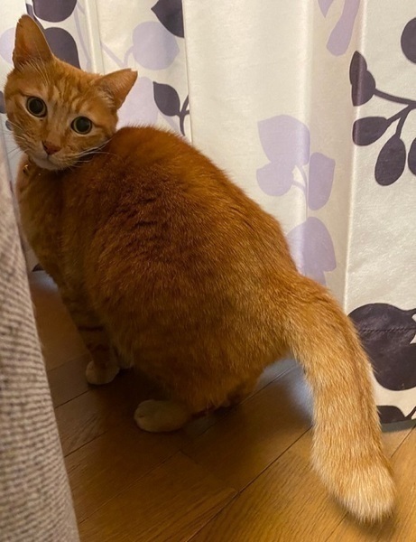 | 特徴(性格など) | 【保護先】 東京都中野区 【仮名】 太郎 【性別/年齢】 オス / 推定5歳 【毛色】 茶トラ。しっぽは10センチくらいでまっすぐ 【コメント】 愛情を独占したい超甘えん坊。お膝で寝るの大好き。遊ぶと、短足ちゃんながら頑張ってジャンプする姿がとても可愛いです。お布団に入ってもみもみ、ゴロゴロすぐします。しっぽをブンブン振り回してお返事します。お留守番も悪させず上手ですが、甘えん坊なので、できるだけお留守番が少なく、たくさんかまってあげられるお宅を希望いたします。臆病なところがあり、仲良くなりたいけど猫に対するアプローチが下手なので、遊んでとじゃれついても受け入れてくれる元気で大らかな先住ちゃんであれば、2匹飼いでも大丈夫です。 ★健康チェック(検便・触診)済み、トイレしつけ済み、ノミダニ駆除済み、血液検査済み(猫エイズ・猫白血病ともに陰性)、去勢手術済み、ワクチン接種済み |