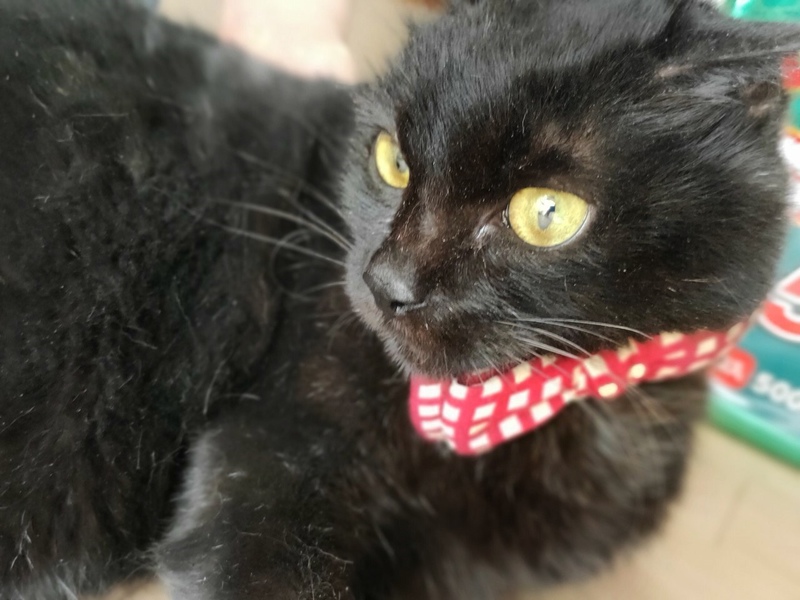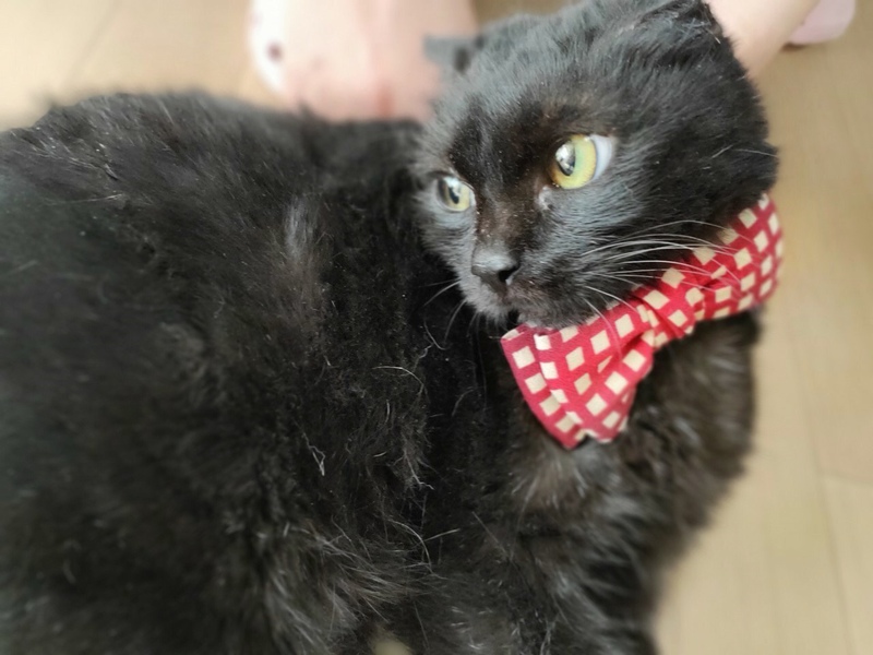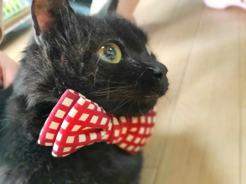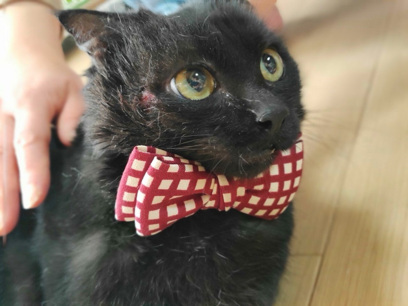 | 特徴(性格など) | 黒猫の女の子です。 引き取った当時は、顔にキズがあり、かわいそうな状態でしたが、今はだいぶ歩けるようになりました。 |