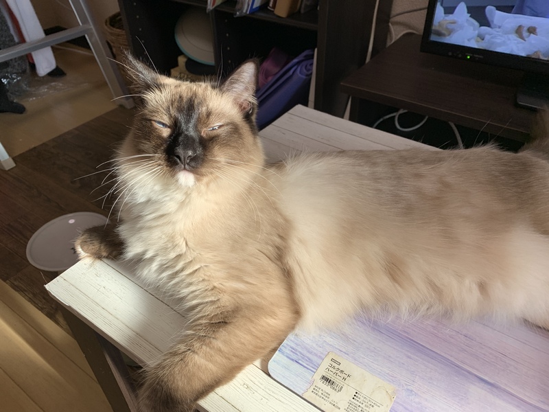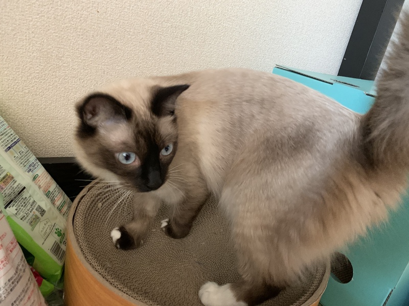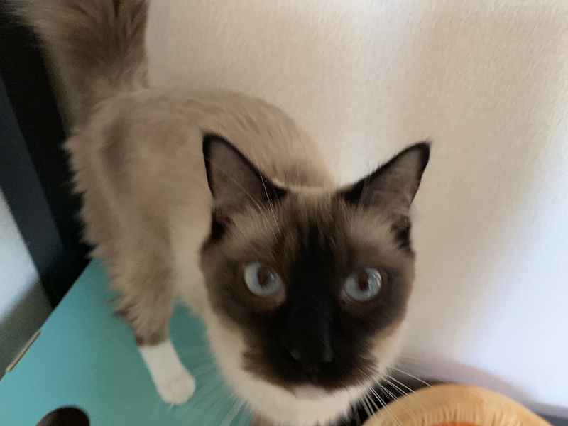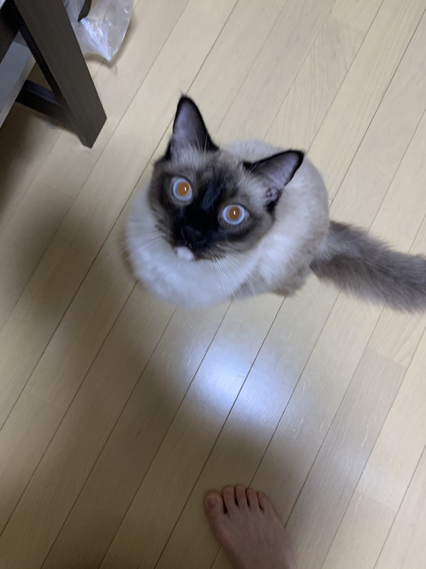 | 特徴(性格など) | ○仮名: バニラス(足先が白いのでバニラアイスを縮めて) ○性格: ラグドールらしく大人しく抱っこを嫌がらない子です。爪切りも抵抗しません♪ 寝る時はそばに来てくれる癒しにゃんこで、朝ごはん催促のモーニングコールは、寝起きが悪いと顔を舐めてきます。優しい性格なので他の猫にも遠慮しちゃう子です。シャッーと威嚇することはまずありません。 ○毛色: 顔と足、耳の部分が黒く足先は白いです。眼の色はキレイなブルーです。 |