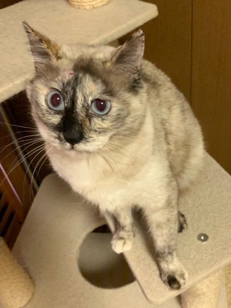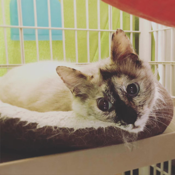 | 特徴(性格など) | 元々は地域猫として、お外で暮らしていた 青い目が美しいシャム系のサビ猫でした。 虐待犯により頭を割られるという大怪我を負い、その後遺症で顔が少しゆがんでいます。 しかし、あの怪我を生き延び、さらに生活に支障がないほどに回復しており、 奇跡的な強運の猫です。 シェルターに来た当初は人を怖がり、威嚇をしていました。 最近では人を信じ始めてくれ、 人の動きを目で追い、 指先にお鼻をツンと挨拶したり、 ちゅーるを食べてくれるほどになりました。 サビ猫らしいとても賢い猫なので、 飼い主に一途な、かけがえのないパートナーになってくれると思います。 しかし、虐待のトラウマは根深く、 警戒心が抜けきるにはかなりの時間が必要です。 彼女のペースに合わせてゆっくり付き合ってくださる 大人だけの静かな暮らしのご家庭と出会えたらと願っています。 ⭐︎ワクチン2回接種済み ⭐︎のみ取り ⭐︎駆虫、検便済み ⭐︎トイレトレーニング済み ⭐︎ウイルス検査(エイズ・白血病)陰性 ⭐︎不妊去勢手術済み ⭐︎マイクロチップ挿入済み |