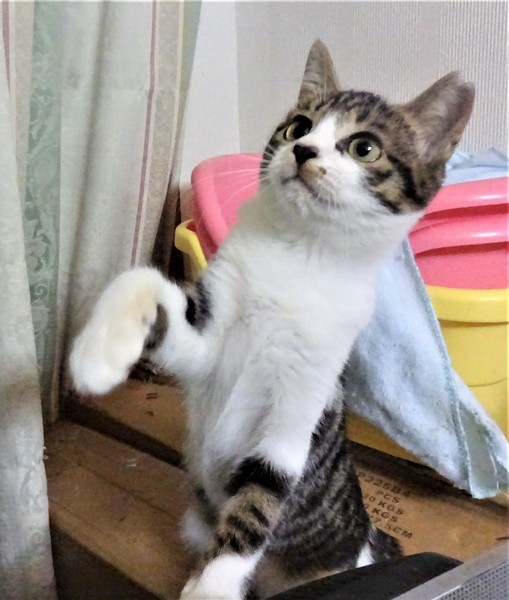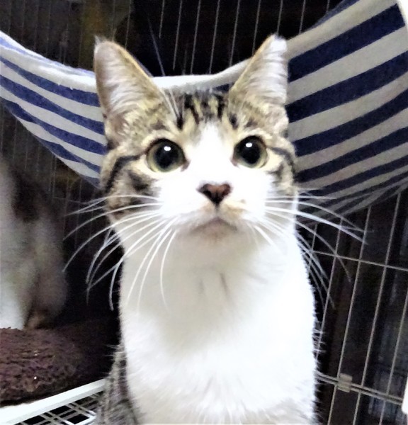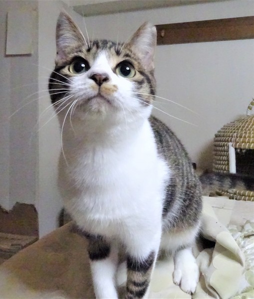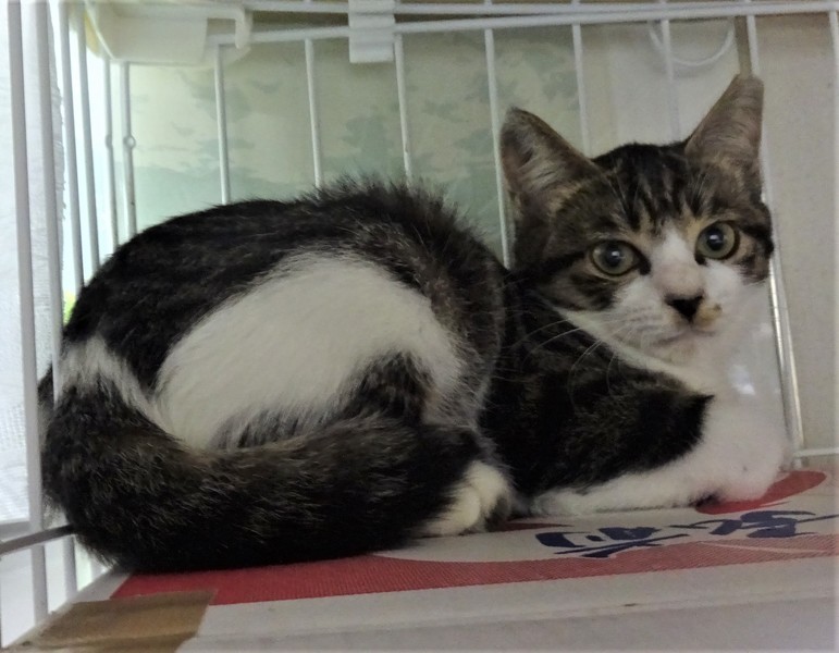 | 特徴(性格など) | 仮名: マーシュちゃん(メス) 毛色: キジ白、尻尾長い 性格: ビビリなんですけど、ケージにいる時は呼んだり、甘えたりして嬉しくなると、ちょっと甘噛みしちゃいます。 ケージの中で触られるのは大丈夫なんですが、ケージから出ると捕まりません。 でも自分からケージに入るので、ケージ飼いをして貰い、中にいるうちに触ったりして馴れてくれると思います。他猫とはうまく付き合えるようです。 兄妹のマレ君とは同じケージにいて、仲良しですから、2匹一緒の縁があると嬉しいですが、1匹でも可能です。猫初心者の方には少し難しいので、猫飼育経験のある方が良いと思います。 |