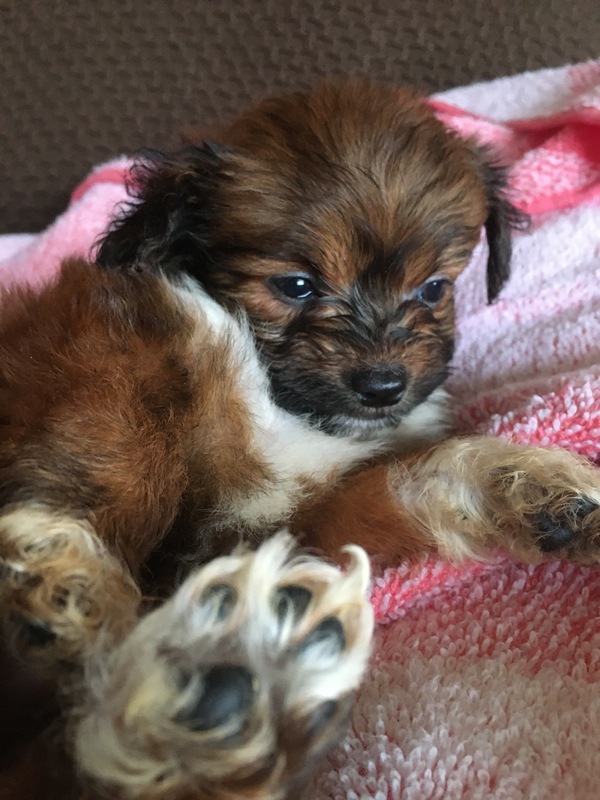 | 特徴(性格など) | ママ パピヨン パパ トイプードル 元気な女の子で 色はブラウン 四足 と尻尾の先 白 パピプーと検索してください 世界で1色 です。 ママ・パピヨンの 飾り毛が 足・尻尾 出てきております。 |
