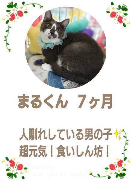 | 特徴(性格など) | ねこざんまい【おうちde譲渡会】 ★お見合い場所:浅草橋界隈となります 保護主宅等でのお見合い形式の個別譲渡会となります。 お見合いは保護主ご指定の場所にお越し頂く事になりますのでご了承下さい。 ※ご応募いただいた猫ちゃんのみのお見合いとなります ◆ 名 前 ◆ まるくん ◆ 年 齢 ◆ 7ヶ月くらい ◆ 性 別 ◆ 男の子 ◆性格は?◆ 丸顔の可愛い男の子、まるくん♪ グレー白のとってもキレイな毛色をしています。 とっても人馴れしており、人が大好きな甘えん坊さんです♡ おもちゃでもよーく遊びます。 がっしりとした前足。 これは大きな猫さんになると予測されます! コロンとしたフォルムが愛嬌たっぷりの癒し系男子です。 ごはん大好き♡ナデナデ大好きです。 他の猫さんには、最初は唸りますが激しいケンカには至りません。 出来れば1匹で可愛がっていただけると嬉しいです。 生活の安定した、おひとり暮らしの女性の方からのお問い合わせも歓迎致します! ペットではなく、共に暮す家族の一員としてお迎えいただけるご家庭を希望しています。 お見合いにはお世話してくださるご家族の皆様、またはご夫婦ご一緒に会いにいらしてくださいね! 脱走や危険防止対策をしていただけないご家庭への譲渡は、大変申し訳ございませんがご遠慮させていただいております。 |