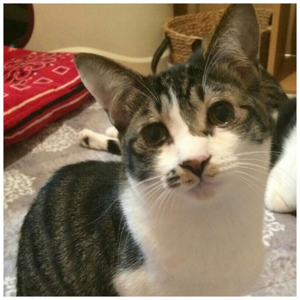 | 里親募集する理由 | サバ白君は生後5カ月の頃、 交通量の多い道路の側溝の上で 1匹でチョコンと座っているところを 保護されました。 動かずじっとしていたので車にひかれる 事もなく助かった命です。 猫風邪が酷くて 両目が塞がっていました。 1日に何度も何度も点眼し お薬をのませ… それでもなかなか目は良くならず でしたが、幸運な事に 失明する事は ありませんでした。 今では、お目目もぱっちりです |