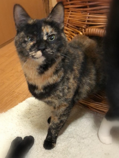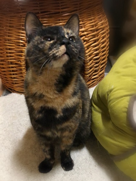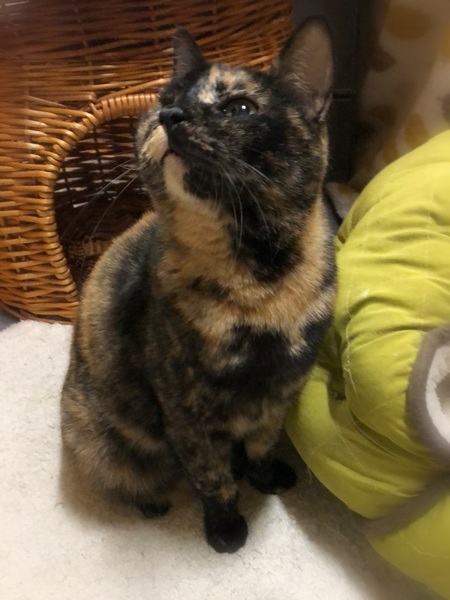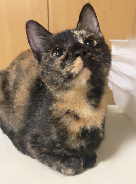 | 特徴(性格など) | 仮名、たぬき まんまる顔にまんまる体系・少しだけ短めのしっぽ、さび女の子です。 環境に慣れるまで少し時間が必要です。 のんびりおっとりした性格です。 ご飯の時は他の子が催促する中、いつも焦らず定位置でじっと待機。 撫でるとゴロゴロ、抱っこをすると膝にしがみつき自分から下りない甘えん坊です。 |