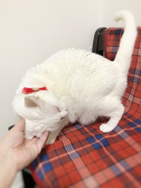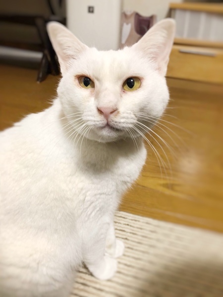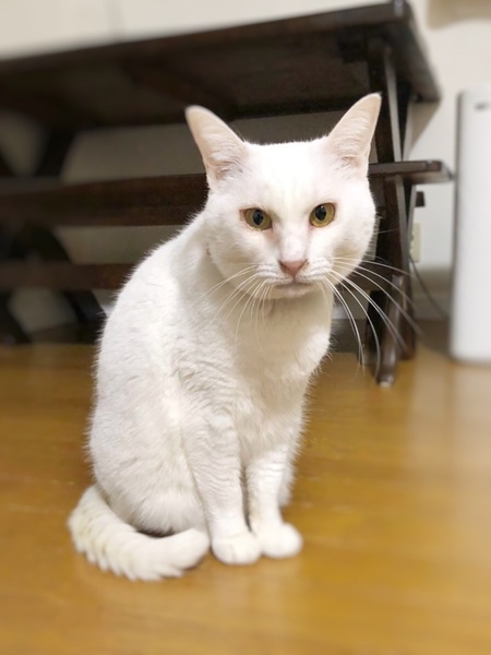 | 特徴(性格など) | おとなしくて、とてもかわいい白猫ちゃんです。 甘えたさんで、他の猫ちゃんともすぐに仲良くなりました。 マイペースの子で、コタツ大好きな、とってもかわいいこです。 ぜひ、シロップちゃんに会いに来て下さい。 |