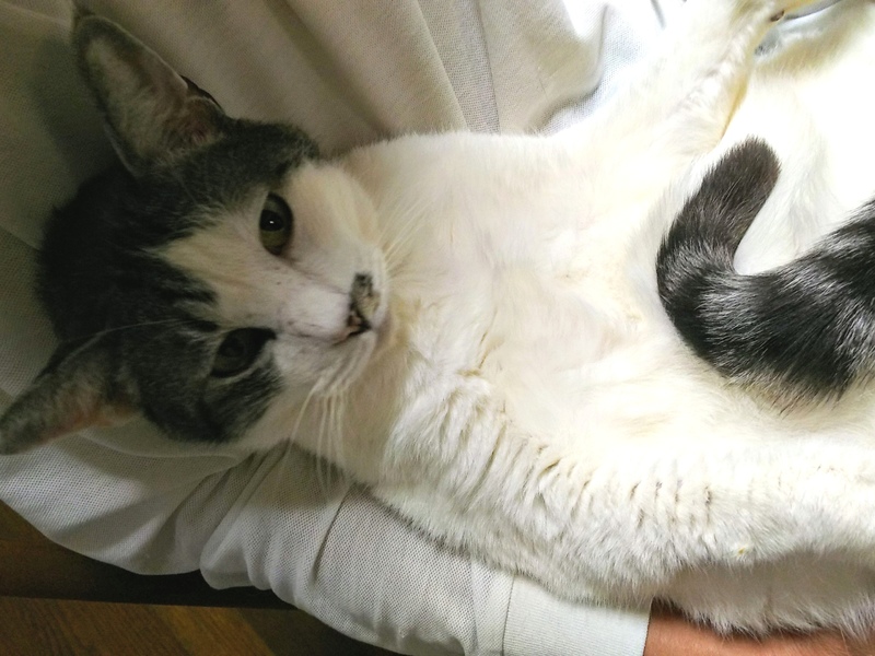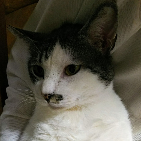 | 特徴(性格など) | 人が大好きで、一度膝にのるとおりません! とても穏やかな性格です。窓辺で外を眺めるのも大好きです。 小さな仔猫もとても可愛がって優しく接してくれました。とにかくベタベタ甘えん坊なので一人っ子希望です。とにかく甘えん坊で、いつも人のそばにいます。尻尾は長くてまっすぐです。 健康状態 エイズキャリアですが食欲もありガリガリだったのが嘘の様で4.6㎏だった体重もおそらく6㎏位にはなってると思います。 肝心な傷の具合ですが、少しずつ小さくなっている状態です。最近はお薬を飲みつつ、様子を見ています。少し傷跡に毛も生えてきました。 傷の様子はブログにものせました。全てを承知して、チョビを家族としてお迎え下さるご家族を探しています。 ※チョビは耳カットした桜猫です。 |