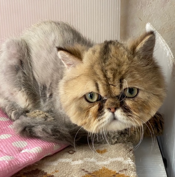 | 特徴(性格など) | 名前:かぶと 毛色:チンチラゴールド シャイで、ビビりですが、時間をかけて慣らして下さるかた希望です。大人しくて噛んだり引っかいたりもなく、飼いやすいと思います。 現在、丸刈りですが、毛が伸びたらゴージャスになると思います。 レスキュー当時はカーテン裏によく隠れていましたが、最近はキャットタワーの上やケージの上にいることが多くなりました。食欲も旺盛でとっても元気です。 健康状態良好です。 去勢手術済 3種混合ワクチン済 猫白血病・エイズ陰性 検便:陰性 マイクロチップ装着 耳ダニ(+)駆虫済レボリューションを3回つけています。 年齢は去勢手術の時に獣医さんで出して頂いた推定年齢になります。状態はすごく良く、歯も綺麗です。 |