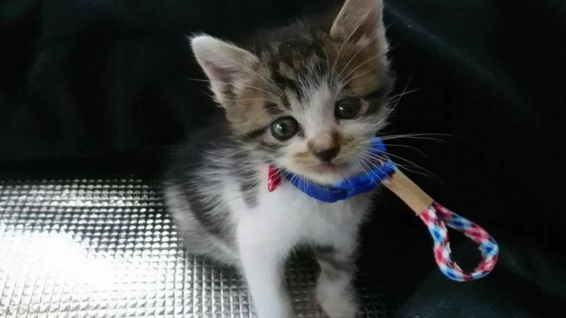 | 特徴(性格など) | 白にまだらの柄です! まだ、よちよち歩きです! 夜はずっと大人しく寝ています! 鳴き声もミャーとうるさくないです! |