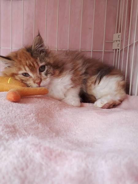 | 特徴(性格など) | 【ベタベタ甘えんぼの超可愛い女の子♪春ちゃん☆】 もふもふゴージャスな三毛の毛並みに 小さなお顔の超キュートな女の子、 その名も「春ちゃん」! 春ちゃんは、 劣悪な環境下でメインクーンのブリーダーをしている老人の元からレスキューされました。 メインクーン、またはメインクーンMIXと思われます。 性格は超超甘えんぼ!! とっても可愛い子なんですよ♪ ただ、ずっとケージに入れられて育ちましたので まだ甘噛みしてしまうことがございます。 春ちゃんをお迎えいただきます場合は 「必ず2段以上の猫用ケージ」をご用意いただき ケージにて、 噛み癖を直す練習を根気よくしていただけますよう、お願い致します。 抱っこ大好きで、ベタベタの甘えんぼさんなので 「人間は噛まれたら痛い」と分かりさえすれば 完璧な人生のパートナーになってくれること間違いなし!! 噛み癖があるので 幼いお子様のいるご家庭は難しいかなと思います。 中学生以上など、 ご家族皆様で一緒に噛み癖を直す練習に取り組んでくださるご家族とのご縁をお待ち致しております。 練習の仕方は、丁寧にお伝え致しますし ご心配なことがありましたらいつでもご相談いただけますので その点はご安心くださいませ^^ また、メインクーンの血筋なので 将来は5キロ程度の大型猫さんに成長する可能性もございます。 長毛さんなので 毎日ブラッシングして毛玉をつくらないようにするなど、 こまめなケアも必要になります。 その点もきちんとご対応いただける方のみ、ご応募をお願い致します。 春ちゃんについて、 疑問や質問がおありでしたらいつでもお気軽に♪ 可愛いくて甘えんぼなプリティ春ちゃんに 素敵なご縁がありますように! |
