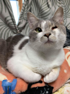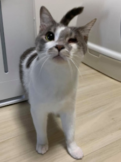 | 特徴(性格など) | 仮名を『グレ』と言います。 尻尾はすらっと長く真っ直ぐです。 多頭飼育崩壊現場よりレスキューされました。 60頭の多頭飼育崩壊現場にいましたグレは、飼い主にミルクから育てられました。 人見知りもほとんどなく、場所見知りも最初だけ、陽気で明るい超絶プラス思考な仔です。 左眼球が萎縮していますが、室内での日常生活に支障ありません。 眼脂が出やすいのですが、拭き取りもさせてくれますし、現在投薬やその他の治療の必要もありません。 他猫とべったり一緒にいたいわけでもなさそうですが、グレは他猫にも友好的です。 追いかけっこやボール転がしなどの団体競技、猫じゃらしフリフリにジャンプ!などの個人(猫)競技、どちらも得意とします♪ 先住猫さんがいらっしゃるお家でも、グレは大丈夫だと思います。 愛情と責任を持って、家族として迎えていただけます方に。 可愛いグレに是非ぜひ会いに来てくださいね。 【医療処置情報】これから実施のも含まれます *健康チェック *3種混合ワクチン接種 *ウイルス検査実施(FIV.FeLV共に陰性) *検便実施 *駆虫薬投与(レボリューション、ドロンタール) *マイクロチップ装着 *不妊・去勢手術 |