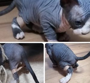 | 里親募集する理由 | スイマー症候群のため、販売ルートから外れ、治療のためレスキューしました。 現在は完治しており、なんら普通の猫と変わりなく、治療の継続は必要ありません。 まだ小さく毛がないという特殊な種類で人間の都合で連れ回すにはあまりに負担が大きいと思うので、コロナが終息し譲渡会の開催が決まった場合も今のところ参加予定はありません。 ◆注意事項◆ デリケートで管理が難しい種類のため、通常よりも譲渡条件が厳しくなります。 毛の手入れがラクそう、毛のアレルギーだから、犬は大変だから猫を・・・と思っている方は応募をお控えください。 スフィンクスの無毛は、自然発生した突然変異で、奇形ではありませんが、普通の猫よりも飼育に手間もお金もかかることは間違いありません。 通常の猫に比べて餌の量も2~3倍食べますが正常です。 脂っぽい汗をかきます。 子猫のときからお風呂に慣らしたり、毎日温かいタオルで体を拭いてあげないといけません。 この手の猫ちゃんをきちんと診られる獣医はまだまだ少ないです。 例えば耳が汚れやすいので耳ダニと間違えられたり、麻酔がききにくかったり、風邪でも普通の猫の倍量の薬が必要だったりご存知ない獣医さんは多いので、飼い主さんの知識も必要ですし、何か少しでもおかしいと思ったときは大きな病院、病院のはしご、猫専門医にかかるくらいの熱意を持っている方でないと飼うのは難しいと思います。 夏場もエアコン必須ですがエアコンから逃げられる環境、冬場は寒さに非常に弱いので24時間エアコンや危険のないペット用カーペットやこたつは必ず用意してください。 温度管理は365日24時間管理していただきたいので慣れている今までに何らかのペットを飼ったことがある方を希望します。 また、病院など外出、気温の変化があるときは服の着用をさせるなどしてください。 この子中心の生活ができるかたを望みます。 |