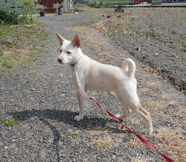 | 特徴(性格など) | 仮名は「つむぎ」 少し薄い茶色の部分がありますが、白い毛色です。 人なつっこく元気な女の子です。 |