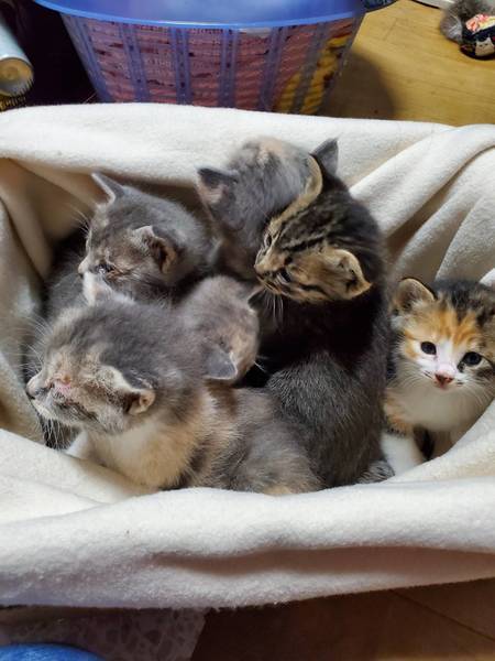 | 特徴(性格など) | グレー系、三毛系、キジトラなどミックスです。 母親はとても毛並みの良いグレーミックスできれいな顔をしています。 |