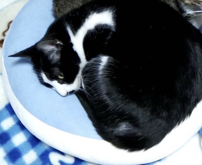 | 特徴(性格など) | 慣れればナデナデは大丈夫ですが、抱っこは苦手です。 おとなしく、ゆったりお昼寝するのが大好きです。 |
