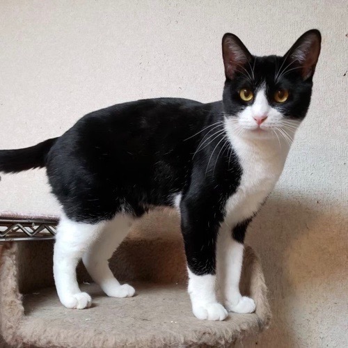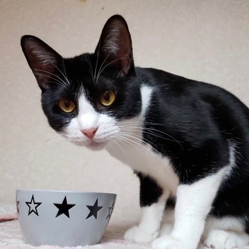 | 特徴(性格など) | 遊びが大好きで、じゃらしを持ち出すとすぐに飛んできます。遊んでほしい時も、じゃらしと保護主の顔を交互に見て訴えかけてきます(笑) 動きやしぐさがなんだかお茶目で、とても愛嬌があり見ていて飽きません。ちょっぴり寄り目で、後ろ足が若干短く歩く姿も可愛いです♥ 猫さんも大好きで他の年上の猫さんにくっついて寝ています。末っ子タイプで甘え上手という感じです。 保護主の予想を軽く裏切り(笑)人間に触られるのはまだあまり好きではないようです。ご飯に夢中の時はお触りOKですが、それ以外の時はあと一息という感じです。 ただ、一緒に暮らしているうちにもっともっと心を開いてくれる子だと思いますので、気長にお待ちいただけるような方とご縁があると嬉しいです。 |