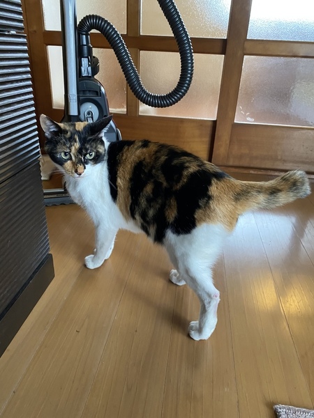 | 特徴(性格など) | 三毛猫の女の子です。 瞳はグリーンでキラキラしていてとても可愛いです。 ずらりとしていて活発で、 ビビり屋でツンデレな性格です。 スリッパや足に戯れるのが好きです。 |