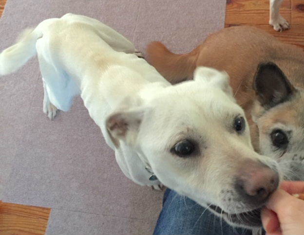 | 特徴(性格など) | MIXの『ヴィクトーリア』です。 (ちばわんHP掲載番号No.4032)←申込時は必ず犬の名前とこの番号を記載してください。 【毛色】白・薄茶 【体重】13.5kg(痩せ過ぎ) 【状態】ワクチン接種済、狂犬病予防接種済、ノミ・ダニ駆除済、駆虫済、マイクロチップ装着済、歯石除去済、一般血液検査済、フィラリア(+) 【人馴】問題なし 【性格・その他】 人が大好きで甘えん坊の女の子です。 目が合っただけで尻尾をパタパタして、すぐにお腹を見せます。攻撃的なところは一切なく、初めての人にも頭を下げてゆっくりと近づき穏やかに挨拶します。 室内でもはしゃぐ事はほとんどありません。ソファーでまったりしたり、お天気の良い日は日向ぼっこを楽しんでいます。 お散歩は強く引くことなくテンポよく歩きます。車通りのある道でも、さほど気にせず淡々と歩きますが、公園で遊ぶ小さなお子さんのはしゃぎ声は苦手なようです。その場から逃げようとするので逸走には注意が必要です。 お留守番は得意ではありません。クレート内の敷物を破いたり、クンクン鳴き続けることがあります。人に対して執着し過ぎる様子が見られるので、求められるがままベタベタと甘えさせるよりも、きちんと距離を取ったメリハリのある接し方をした方が、今後のヴィクトーリアの安定につながると思います。 犬に対しては概ね友好的で、預かり宅の先住犬達とも問題ありません。相手の様子を見てうまく対応しています。相性次第ですが、先住犬のいるお宅のほうが生活に早く馴染めると思います。 排泄は庭と散歩時に済ませています。保護直後は室内での失敗も何度かありましたので、新しい環境ではまたトレーニングが必要になると思います。車酔いはありません。 フィラリアは陽性ですが特に症状は出ていません。早期陰転を目指し、予防薬の通年投与に加えボルバキア治療を開始しました。 十分な脱走対策を施したうえ飼育についてのルールを決めるなど、ご家族皆さんで迷子に関する共通の認識をもって下さり、なるべくお留守番が少なく、今後もクレートトレーニングなど積極的に行ってくださる愛情たっぷりのご家庭を希望しています。 引き続き完全室内飼育で、定期的なワクチン接種やフィラリア治療の継続と予防などの健康管理をきちんとして下さる関東圏内のご家庭で、終生家族の一員として大切にしてくださる方からのお問い合わせをお待ちしています。 なお、主にお世話をされるのが高齢の方のご家庭や同棲カップル、単身者の場合はお断りさせていただきますので、予めご了承ください。 【預かり場所】神奈川県横浜市 【日記】mirumania http://mirumania.exblog.jp/ mirumania(インスタグラム) https://www.instagram.com/mirumania/ 【お申込み】 ちばわんの保護犬への申し込みはhttp://www.chibawan.net/contactform_dogからお願いします。 |
