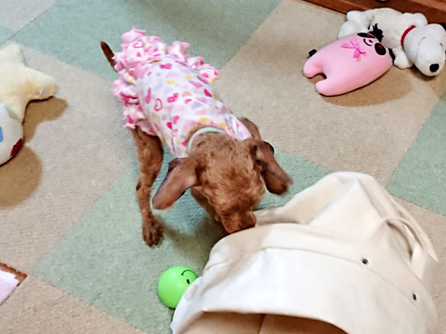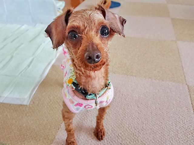 | 特徴(性格など) | ■ 基本情報 ・管理番号 【200303-09】 ・犬種・性別・名前(仮) トイプードル ♀ シェリー ・年齢・体重 推定2~3歳 体重 2.3kg(痩せすぎ) ・特徴 毛色はレッド、小顔で足が長い子です。 ・性格 明るく元気で甘えん坊です。 ■ 暮らしについて ・日常過ごす場所 人が一緒にいるときは室内フリー。 就寝、留守番、食事時はケージに入っています。 ・トイレ 室内トイレ練習中です。散歩でも排泄します。 ・散歩 元気に歩きます。急に走り出したり飛び出したりすることがあるので注意が必要です。 ・お留守番 仮家ではほとんど留守番がないのですが、短時間の留守番はケージでおとなしくできます。 ・外出 車酔いはありません。 ・お手入れ ブラッシング、耳掃除等おとなしくやらせてくれます。 皮膚の状態が良くなく脱毛箇所がありますが、改善しつつあります。 ・他犬との関係 だいたいは問題なく過ごせていますが、空気を読まずしつこく絡むことがあります。 ・人との関係 人懐こく甘えん坊です。 ・お願いしたいこと トリミング必要犬種です。日々のブラッシングや定期的なトリミングをお願いします。 フィラリア陽性のため、陰性になるまで定期的な検査と投薬の継続をお願いします。 ■ 医療管理について(実施日) ・混合ワクチン 〇 5種(2/27) ・狂犬病予防注射 × ・フィラリア抗原検査 + 強陽性(3/3) ・不妊手術 〇 (3/19) ・マイクロチップ 〇 (3/19) ・健康チェック 〇 (3/3) ・スケーリング 〇 (3/19) ・便検査 〇 ・その他の医療措置 駆虫ドロンタール(2/27) 駆虫フロントラインシラミ駆除(2/27) バイコックス駆虫(3/3) フィラリア詳細検査 (3/3) ・必要な継続医療 フィラリア陽性のため、抗生剤ビブラマイシンとカルメドックを陰性になるまで定期的に投与します。 ・現在の一時預かり先 千葉県流山市 ・預かりスタッフ ヨッコ ・預かりブログ デイジーの家へようこそ「シェリー」(2020/3/22~) ・http://haledaisy.blog.fc2.com/blog-category-12.html ・引取時の様子 ・http://chibatarianna.jugem.jp/?day=20200303 |