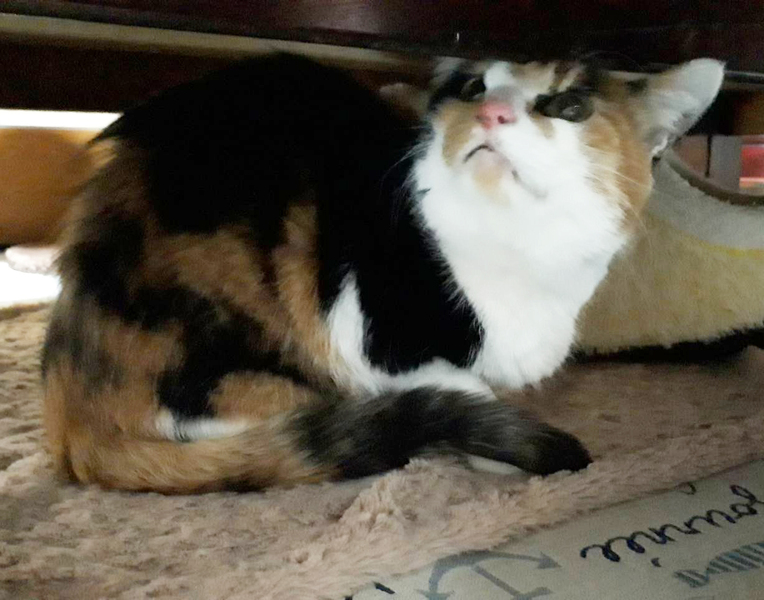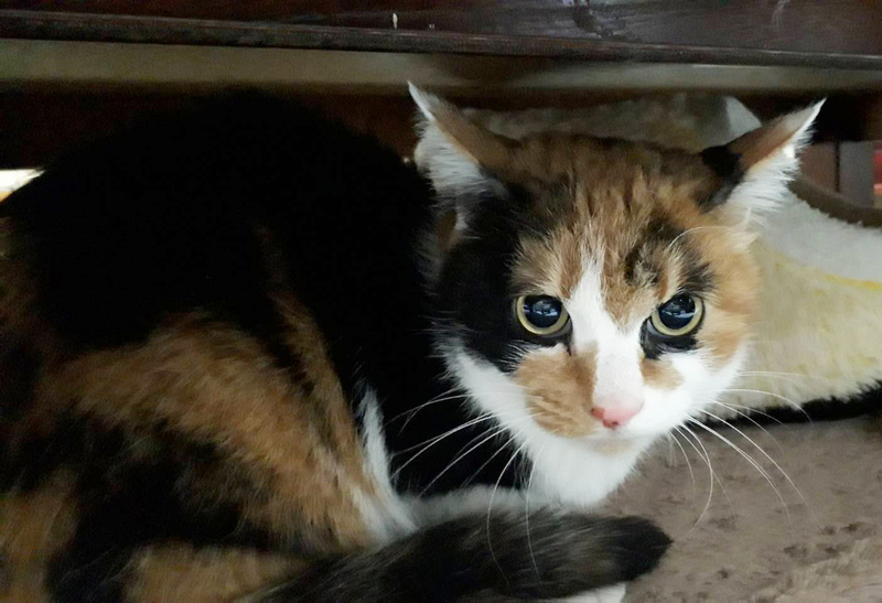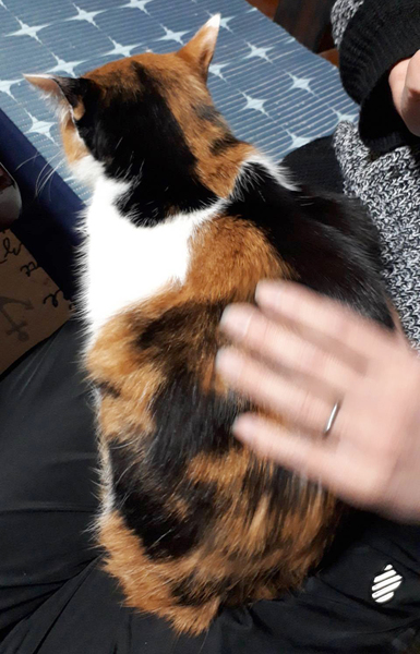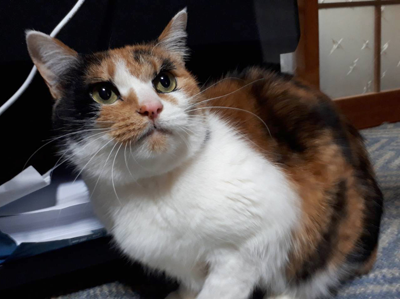 | 特徴(性格など) | はっきりとした色の美しい三毛猫さんです。 まつげエクステしたような顔! 甘えん坊で膝乗りするけれど、高飛車な女王様です。 エイズ・白血病共に陰性です。 |
