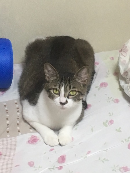 | 特徴(性格など) | 雑種、キジ白です。 臆病で大人しいですが、懐くとベッタリで膝の上に乗ったり一緒に寝るような子です。お外には興味がなく、脱走などはありません。 |