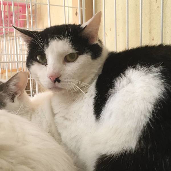 | 特徴(性格など) | ◆ペンタゴンくん(ペンタ から改名しました) 個性的な牛柄ハチワレ男子 ○栃木県の多頭飼育崩壊現場よりやってきました。 ○推定8〜10歳くらい(2025年4月時点)の白黒ハチワレの男の子です。体重は6.45kg(2024年11月6日時点)です。 ○ホルスタインのような白黒柄ですが、頭の黒毛が左耳のまわりだけ白くなっているところと、黒い長い尻尾がチャームポイントです。 ○シェルターの環境にも慣れ、人馴れも少しずつ進んできています。 ○保護当初は恐怖心から攻撃性がありましたが、今は触ってもほぼ手が出なくなりました。 ○猫とはオスメス関係なく仲良くすることができます。 ○ビビりな性格のため、時間をかけて仲良くなって下さる里親様をお待ちしております。 ☆単身のかたはご相談ください。 ★ワクチン、不妊手術済み。 ★猫エイズ、猫白血病ともに陰性。 ★★お見合いを設定することも可能です。まずはお申込みください★★ |