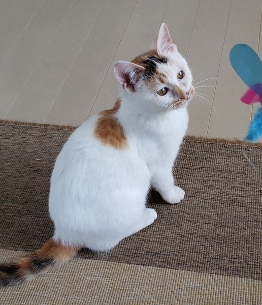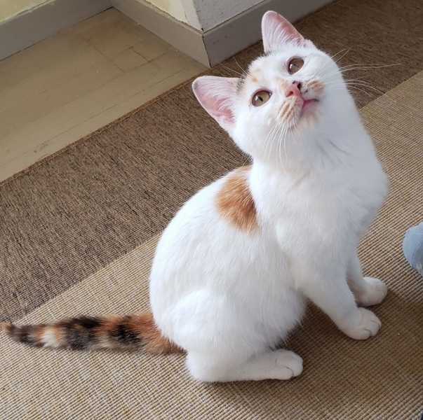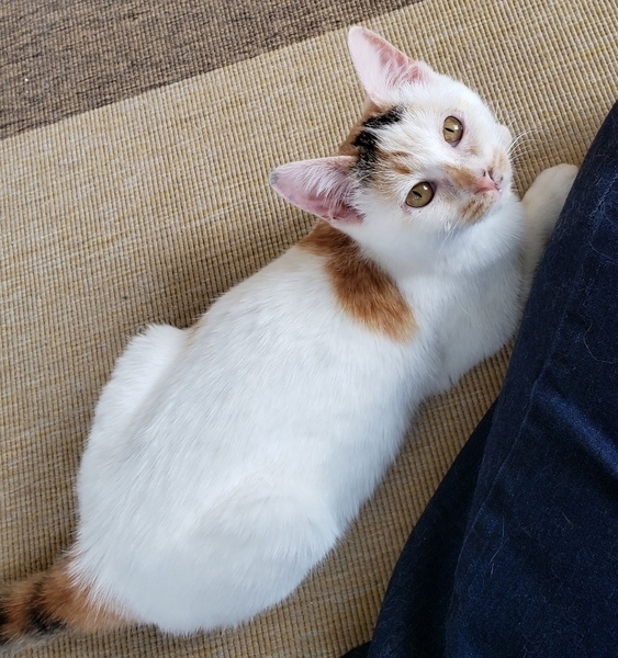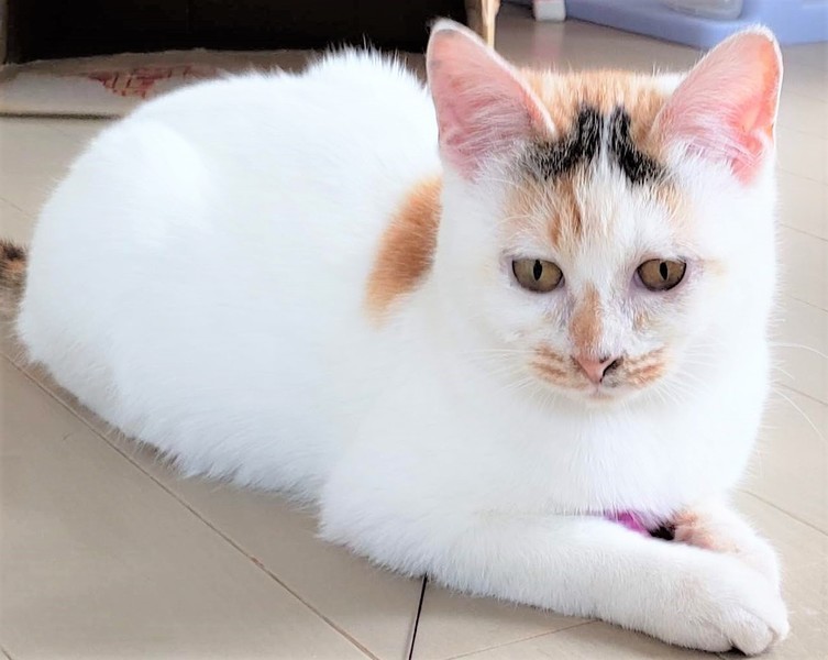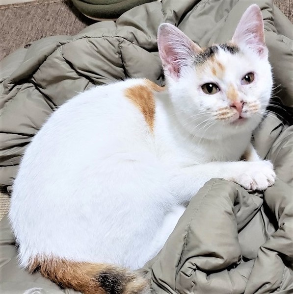 | 特徴(性格など) | 仮名: 桃ちゃん(メス) 毛色: 白三毛 性格: 甘えん坊で、遊びも大好き、自分から膝にものってきます。 とっても甘えん坊で、ひとがいないと寂しくてなきます。 出来るだけ留守の時間が短い環境で甘えさせて下さい。 健康状態は良好です 駆虫済 3種混合ワクチン済 猫エイズ・白血病ウィルス検査はともに陰性 |