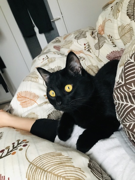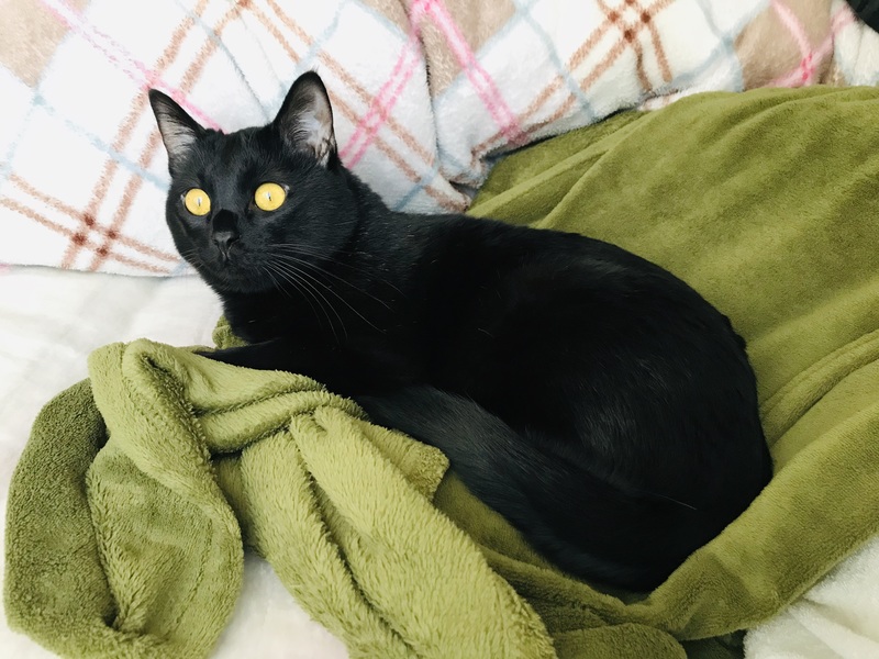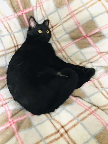 | 特徴(性格など) | 黒猫ちゃんです!とても人懐っこい性格で、ゴロゴロ言いながら膝に乗ってきたり、撫でろと頭をくっつけてくる甘えん坊さんです。絶対に噛まない、引っ掻くことはしません!夜は一緒に布団で寝てくれます。 | ||