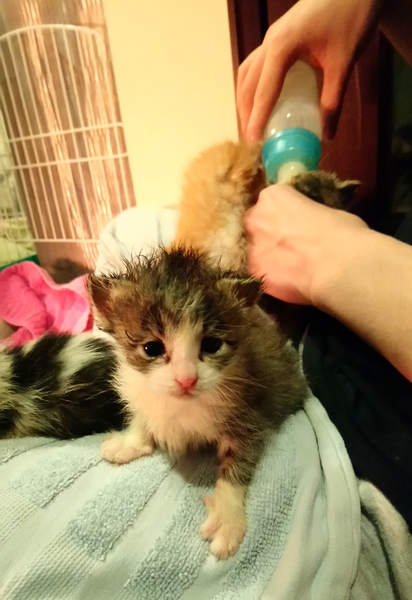 | その他(譲渡条件など) | 捨てられて間もなかったようで見たところの健康状態には問題ありません。ノミもついていませんでした。 毎日ミルクを良く飲み、元気に動き回ります。 まだ離乳前なので、すぐに譲渡をご希望の方は離乳前の子猫を育てた経験のある方のみにさせていただきます。 もう少し大きくなってからが良いという方のご相談も受け付けます。 子猫なので、なるだけお留守の少ない家庭が希望です。 お引渡しは、里親さんのお宅に伺って直接お渡ししたいと思います。 よろしくお願いします。 |