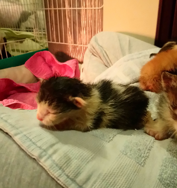 | 里親募集する理由 | 生後4~5日の子猫3匹と、生後2週間程度の子猫3匹が、成田市のコンビニの前に箱に入れられて6匹まとめて捨てられていました。今回はそのうち5匹の募集です。 我が家ではすでに3匹の捨て猫を保護しており、そのうち2匹はシニア猫で持病があります。なので6匹全員を保護することは出来ません。 終生可愛がっていただけるご家族を希望しています。 |