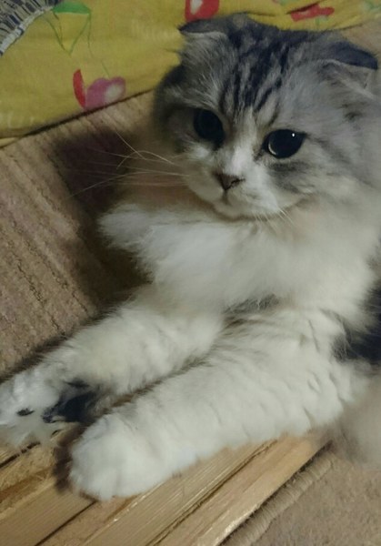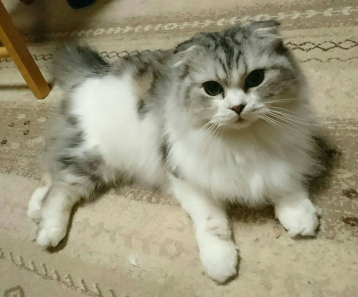 | 特徴(性格など) | 王様気質でどこに行っても堂々としている大物感たっぷりなジャック。 人が大好きで、動きがおっとりしていて誰にでもなついてくれる子です。 多頭飼育の猫の中で、生き抜いてきたせいか、猫同士では上下関係をよくわかって、うまくやっています。 食いしん坊さんで、フードは食べても食べてもせがんできます。 犬のように尻尾を振って催促して、待っている姿がとても可愛いです。 寝る事と食べる事が大好き。 特に暖かいところで、寝転ぶ事が多く、我が家ではぐうたらなジャックと呼んでいます。 全く警戒心がなく、自由奔放な気質です。 気が強いところもあり、嫌がる事をすると怒り、手が出る事もありますが、全く怖くありません。 基本は穏やかな飼いやすい良い子です。 まだまだ遊びは好きで、若い猫とつるんで遊びますが、動きが鈍いので、遊び相手にならず、いつも先を越されます。 そんなジャックも皆から、ぬいぐるみのように可愛いと言われますが、フードアレルギーがあり、一度食べたものでもしばらくすると、吐いてしまうので、フードを変えていく必要があります。 吐いては変えていく事になりますが、決まったフードの中で、変えていってもらう事になります。 カリカリは、今のところはあまり食べず、ウエット中心です。 また、耳もスコティッシュ特有の汚れやすい耳なので、定期的に掃除をしたり、毛がたまりやすいので、ブラッシング等が必要です。 手が少々かかりますが、大物感と、素直さと、人懐っこい性格が癒される事は、間違いない子です。 家族として愛情をかけていただける里親さんをお待ちしています。 |