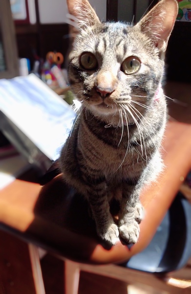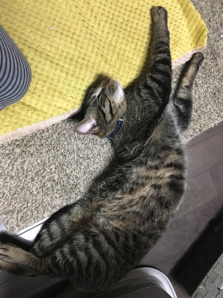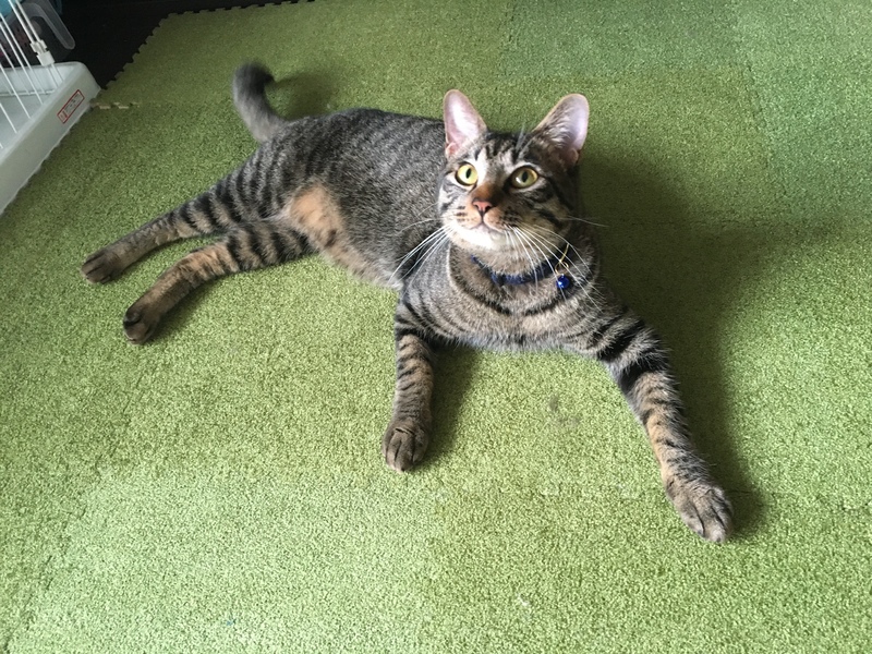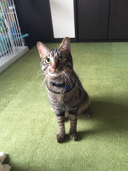 | 特徴(性格など) | キジトラ オス 新しい環境や新しいものには敏感で怖がります。が最初だけです。 慣れるとゴロゴロいい、頭を擦り付けてくる子です。撫でられると大変喜びます。甘えん坊で寂しがりやでかまってちゃんです。常に人がいるところにいたがります。トイレにもついて回ります。目があったり名前を呼ぶと来ます。普段は暖かいところで手足のばして長くなってます。気付くと、お腹を上にして寝たりしてます。とても穏やかな子で子どもが触ってもあまり嫌がりません(ひつこいと甘噛みしますが少しです) おもちゃで遊ぶと瞬時に動きますが、なかなか取れないところが可愛いです。 高いところが好きで、留守中は3段ケージの一番上でくつろいでます。 おとなしいので、よいパートナーになれると思います。 穏やか/甘えん坊/寂しがりや/かまってちゃん/撫でられ好き/人好き |