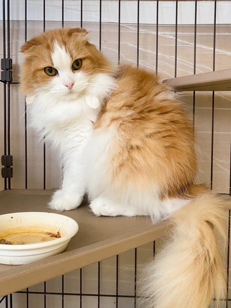 | 特徴(性格など) | まだ人の手が怖い「コーヒー」くん♡ まだまだ警戒心が強く、抱っこもナデナデも難しいけれど、穏やかな気の良い男子です。 一日2回のパウチ・タイムが大好きで、傍にやってきて催促アピール♪ 現在、ブランド・ドライフードを置き餌として栄養補給、水分補給のため一日2回パウチを与えています。 保護当時からずっと下痢が続き、高齢もあり、獣医さまと相談の結果、ワクチン未接種となっています。 |