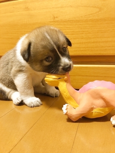 | 特徴(性格など) | 中型ミックス犬子犬、オス、2020-4月1日生まれ 将来12-13キロ 母犬の体格から予想です |