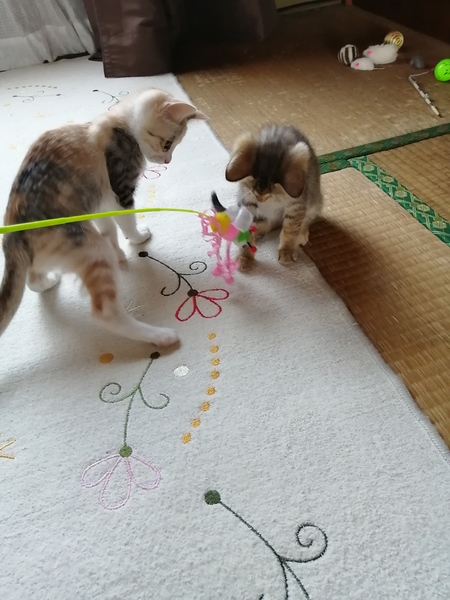 | 里親募集する理由 | 我が家は既に6匹おります。 避妊手術のタイミングが合わず 今回赤ちゃんが産まれました。 1か月以上前に他の兄妹たちを 載せて里親様決まりました。 とても個々に幸せに暮らしていますとお便りもいただきました。 何よりも1番幸せです。 6匹うまれ、まだ、一回り体が小さかった為大きくなるまで 育てていました。2匹。目の具合も少し気になり我が家で育てていました。 4月に入り母猫が風邪をひいてしまい 実家に預けておりました。とても大事に育てておりました。母猫も来月に 避妊手術の予定です。 本日、様子を見に来ました。 とても元気に成長して、 目の具合もよく この度募集に至りました! |