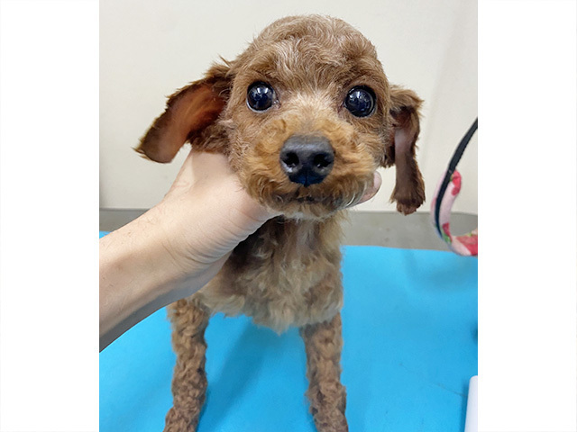 | 特徴(性格など) | ■ 基本情報 ・管理番号 【200303-08】 ・犬種・性別・名前(仮) トイプードル ♀ ファミー ・年齢・体重 推定2~3歳 体重 1.78kg(痩せ過ぎ) ・特徴 被毛はレッド、小柄な子です。 ・性格 明るく元気です。 ■ 暮らしについて ・日常過ごす場所 室内フリーです。イタズラをする事があります。 ・トイレ トイレシーツの認識はありません。練習中です。 ・散歩 練習中です。 ・お留守番 フリーで問題はありませんが、 トイレの認識はないのとイタズラをするため、広いスペースを囲った中で生活しています。 ・外出 練習中です。 ・お手入れ 練習中です。 ・他犬との関係 問題なく過ごせます。弱い子ではありません。 ・人との関係 慣れると人懐っこく甘えん坊です。 サイズが小さくとてもすばしっこいため、ご高齢者さま及びお子様のご年齢により 辞退させて頂く場合がございます。 ・お願いしたいこと トリミング必要犬種です。日々のブラッシングや定期的なトリミングをお願いします。 パテラグレード(左右G1)床を滑らないよう工夫したり、高い所からの上り下り、 ジャンプなどをなるべくしないように気をつけて下さい。 パターン脱毛有り(耳部分) とてもすばしっこいです逃走対策を必ずお願いします。 ■ 医療管理について(実施日) ・混合ワクチン 〇 5種(2/27) ・狂犬病予防注射 × ・フィラリア抗原検査 + (強陽性)(3/3) ・不妊手術 〇 (3/31) ・マイクロチップ 〇 ・健康チェック 〇 (3/31) ・スケーリング 〇 (3/31) ・便検査 × 駆虫剤投与済み(2/27) ・その他の医療措置 駆虫ドロンタール・フロントライン(2/27) ・必要な継続医療 フィラリア強陽性のため、陰性になるまで定期的な検査と投薬の継続をお願いします。 抗生剤ビブラマイシンとカルドメックを陰性になるまで定期的に投与します。 ・現在の一時預かり先 東京都江東区 ・預かりスタッフ カコ&あや ・預かりブログ 晴れ ときどき 仮ママ(2020/3/3~) ・https://ameblo.jp/pinky12/ 江戸っ子の仮兄妹 ・https://ameblo.jp/ayapcd/ ・引取時の様子 ・http://chibatarianna.jugem.jp/?day=20200303 |
