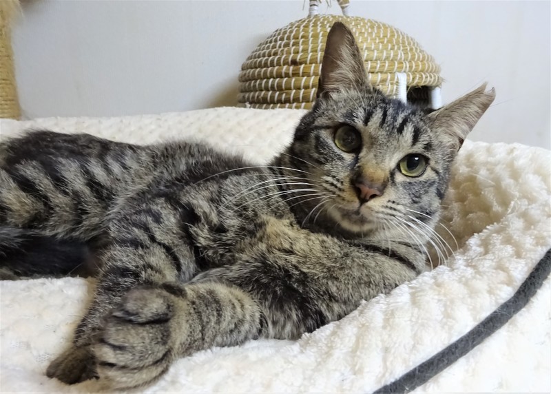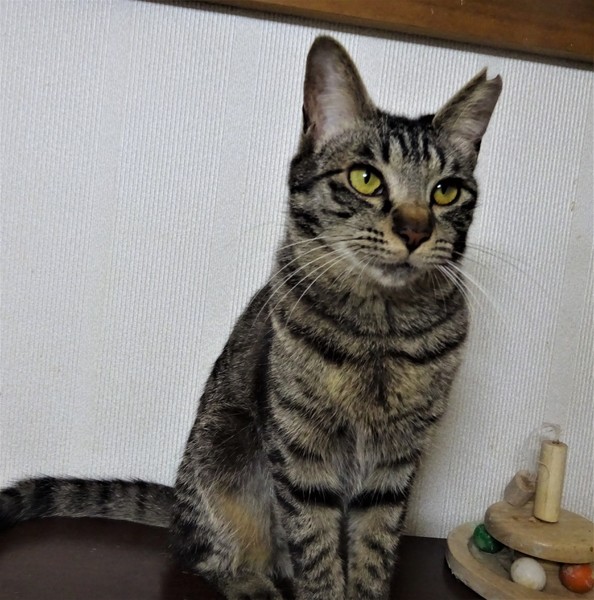 | 特徴(性格など) | 仮名: クララ(メス) 毛色: キジトラ、尻尾長い 性格: 控えめに甘えたり、ご飯の催促をしたりします。 少しビビリのところがあるので、カメラを向けたりすると怖いらしく、パンチしてきます。 触ったり抱っこしたりは、初めての方でも大丈夫と思います。 少し、歯茎が赤いのですが、痛がることもありません。 ドライよりウェットのほうが好きな傾向があるせいかもしれません。 3歳位の猫には甘えますが、同じ月齢の子は得意ではないようです。がトラブルを起こすわけではないので、うまく付き合えると思います。 のみとり済 検便済 駆虫済 3種混合ワクチン済 避妊手術済 猫エイズ・白血病ウィルス検査はともに陰性 |