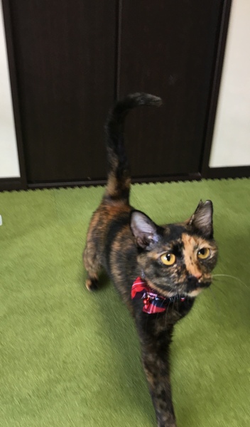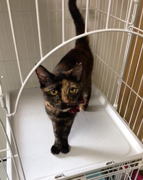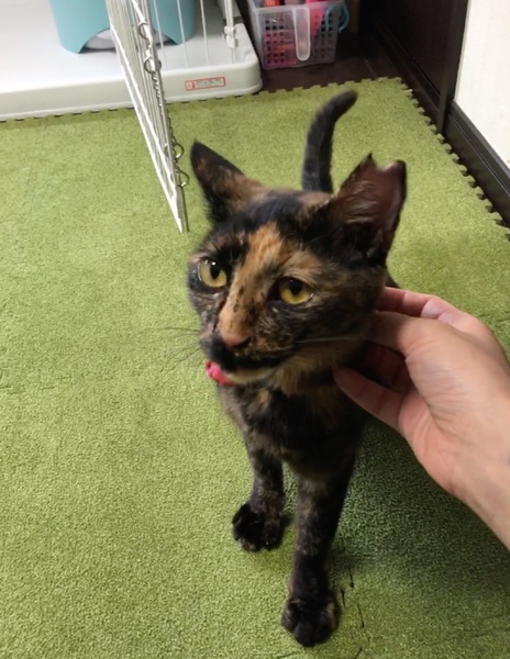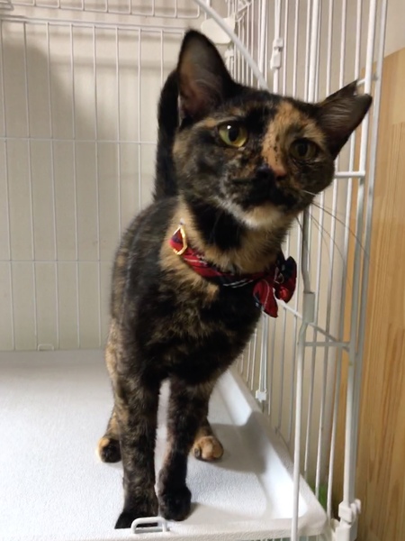 | 特徴(性格など) | 可愛らしいというより、凛とした表情のサビ猫です。 出産経験あり、3歳です。 人には大変慣れており、名前を呼ぶと来ます。 ゴロゴロと擦り寄り、撫でるともっと撫でてといわんばかりに目を見つめてきます。 表情とは裏腹、甘えんぼうな女性です。 行動力もあり、芯の強い猫です。 |