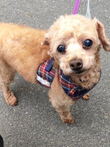 | 特徴(性格など) | ■特徴(仮の名前:パレット) トイプードル ♀ 推定10歳〜 体重2.9キロ ■性格・暮らし ・お散歩は上手に歩きます ・トイレは練習中です ・対人、他犬に攻撃性はありません ・人が好きな性格です ・体のどこを触っても大丈夫です ・両目が白内障ですが、日常生活に支障はありません ・後ろ足が弱いので、足に負担のない生活の配慮をお願いします ■今までに行った医療行為 ・血液検査 ・避妊手術 ・フィラリア抗原検査(-) ・混合ワクチン ・スケーリング ・マイクロチップ装着 |
