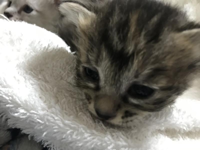 | 特徴(性格など) | 体が白色で耳と鼻周りしっぽが グレー色の子猫ちゃんが2匹? 黒ベースの三毛色の子猫ちゃん一匹 |
