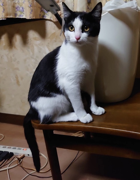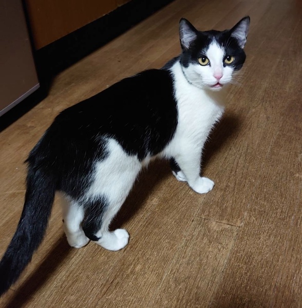 | 特徴(性格など) | 黒白 いわゆるハチワレです 目のあたりで綺麗に色が分かれています |