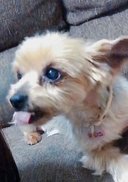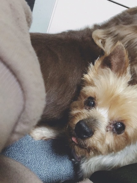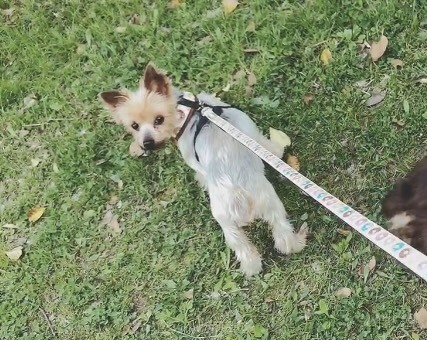 | 特徴(性格など) | 名前ーポンコタージュ 犬種ーヨークシャテリア 性別ーメス♀ 毛色ーブルー 年齢ー7〜8歳くらい 体重ー4.6キロ 性格ー人がとっても大好きです。 尻尾をプリプリと最大限まで振り切って愛情表現してくれる子です。 他の犬とも仲良く過ごせます。 最初は緊張していましたが、今まで喧嘩などにはなったことはありません。 他の犬に向かって、自分から「かまってかまってー!」といく事が多いです。 その結果、他の犬に怒られても動じない強心の持ち主です笑 フードはカリカリとウェットを混ぜて食べさせています。 ご飯の用意をするとクルクル回ったり2本足で立ってキッチンを覗こうとしたりと食欲旺盛です。 散歩はゆっくりマイペースに歩きます。行きたくない方向に行こうとしたら拒否の匍匐前進(ほふくぜんしん)ポーズになります。笑 トイレに関しては、シートでの排泄は練習中です。 たまに失敗しますがシート上の認識はあります。 チャイムが鳴ったりしても吠えませんが ご飯なかなか持ってこない時等待ってる際にたまに可愛く要求吠えをします。 乳腺腫瘍があった為切除してます。 歯が1本もありませんが おやつもニコニコ食べてます。 おいでーと呼ぶと前足を肩や膝にポンポン叩く様に乗せて遊ぼう、撫でてアピールしてくれます。 今まで劣悪環境にいた分、今までのことを取り返すぐらいに絶対幸せにしてくれるご家族様をお待ちしております |