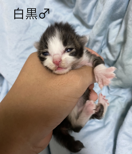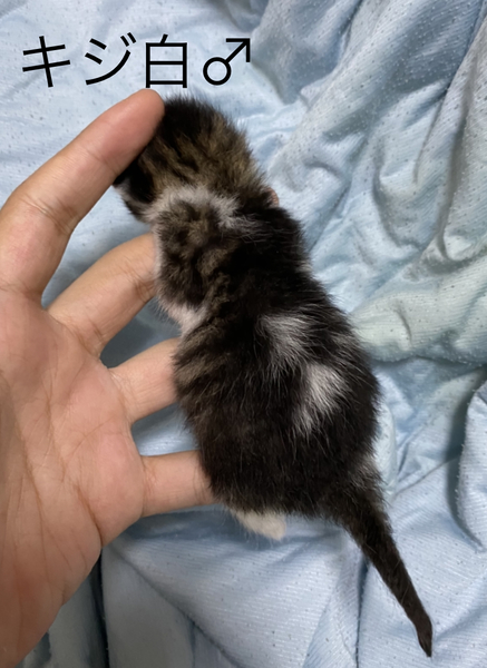 | 里親募集する理由 | 5/8(金)夜、堤防に遺棄されているのを友人が発見。 5/9(土)朝、知らせを聞いて7頭を保護。 知り合いが3頭引き受けてくれたので、4頭を保護中です。 体は洗って、触診のみですがノミはいませんでした。 現在は猫用ミルクのみ、排泄もきちんと出来ています。 150g前後、白黒くんだけ目が開いています。 歯はまだ生えていません。 ----- ペット不可物件住まいなので、里親さんを募集しています。 ★可能であれば、2頭ずつ兄弟でお引き渡し希望です。 |