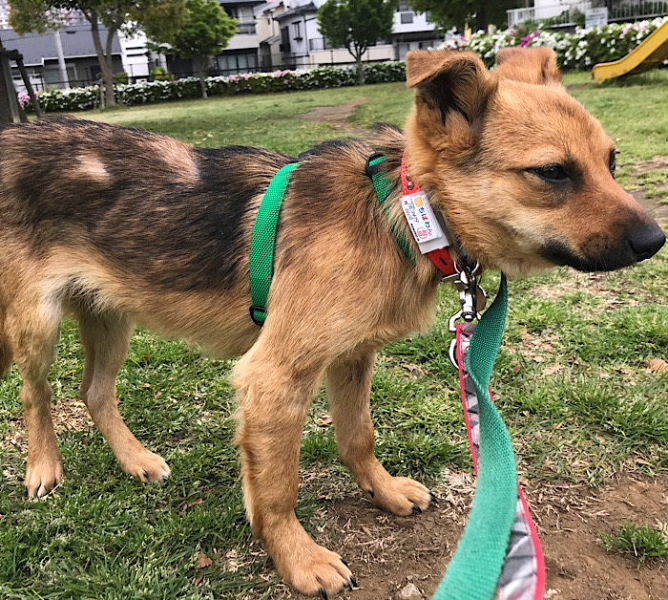 | 特徴(性格など) | MIX子犬の『ココア』です。 (ちばわんHP掲載番号No.4045)←申込時は必ず犬の名前とこの番号を記載してください。 ※「生まれた月日」は推定です。成犬の場合は特に、生育環境によって誤差が生じることがありますのでご承知おきください。 【毛色】 茶・黒 【体重】 9.1kg (5/7現在) 【状態】 ワクチン接種済、ノミ・ダニ駆除済、フィラリア(ー)、検便(ー)、マイクロチップ装着済、狂犬病予防接種予定 【人馴】 問題なし 【性格・その他】 マズルが短めで童顔の愛らしい男の子です。 おっとりした性格で甘えん坊、誰にでも愛想良く振る舞っています。他犬にも威嚇などすることなく、上手に接しています。 抱っこをしようとすると逃げる素振りはしますが、どこを触られてもおとなしくしていられます。 シャンプーやドライヤー等のお手入れも問題ありません。 生活音を気にする事はありませんが、人の姿が見えなくなると淋しがって鼻鳴きします。短時間のお留守番は諦めが早くイタズラもせずに待っていられます。 お散歩の引きは強くありませんが大きなトラックを怖がり、隠れる場所を探そうとしますので注意が必要です。 食欲は旺盛でドライフードだけでも完食します。 排泄は室外・室内両方でできます。現在トイレシートでの成功率は50%程度です。 車に乗ると20分程度で嘔吐します。短い距離から練習させていくと克服できるかもしれません。 栄養状態が悪かったせいか、皮膚の状態が悪く脱毛している部分があります。預かり宅で栄養のある食事を摂らせ様子を見ていますが、改善されない場合は再度受診予定です。 まだ子犬の為、成長後の大きさは予測できません。体重や体長などの制限があるお宅には向いていません。 お留守番が短く、甘やかすだけでなく、良いこと悪いことをしっかりと教えられるご家族を探しています。 引き続き室内飼育で、ワクチン接種やフィラリア予防などの健康管理、脱走・逸走への厳重な注意と対策を必ずお約束していただける関東近郊のご家庭で、終生家族の一員として変わらぬ愛情を注いでくださる方からのお問い合わせをお待ちしております。 尚、子犬の為、主に世話をされるのが高齢の方のご家庭につきましてはお断りさせていただきますので予めご了承下さい。 【預かり場所】千葉県佐倉市 【日記】 zutto_zutto_daisuki(インスタグラム)http://instagram.com/zutto_zutto_daisuki 【お申込み】 ちばわんの保護犬への申し込みはhttp://www.chibawan.net/contactform_dogからお願いします。 |