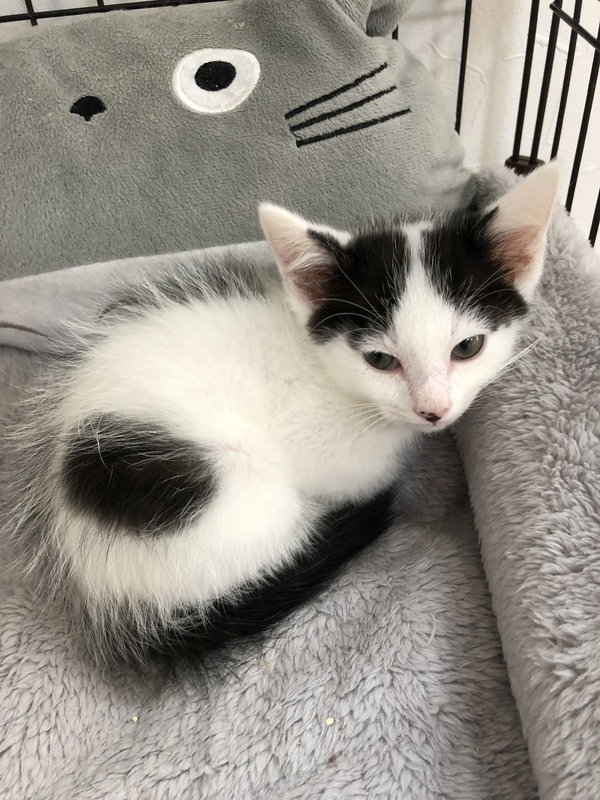 | 特徴(性格など) | 白が多いハチワレくん。 とっても元気に走り回る元気っ子です。 他の猫ちゃんとも仲良く遊べます。 |