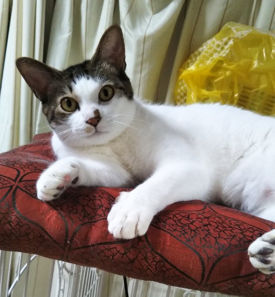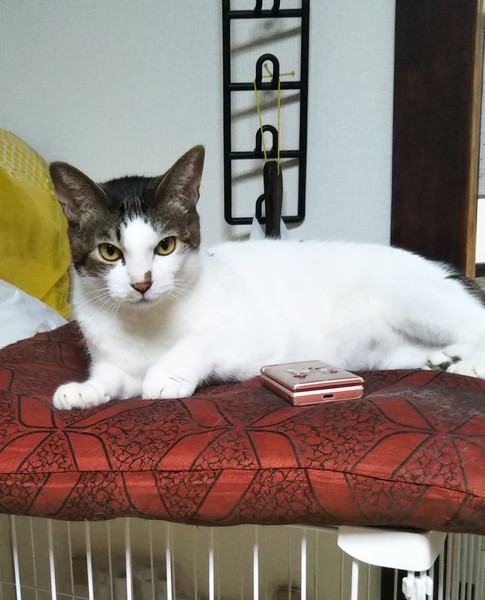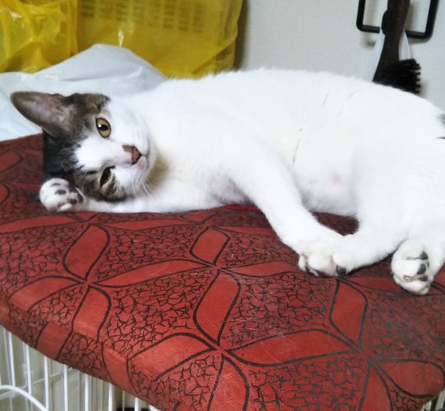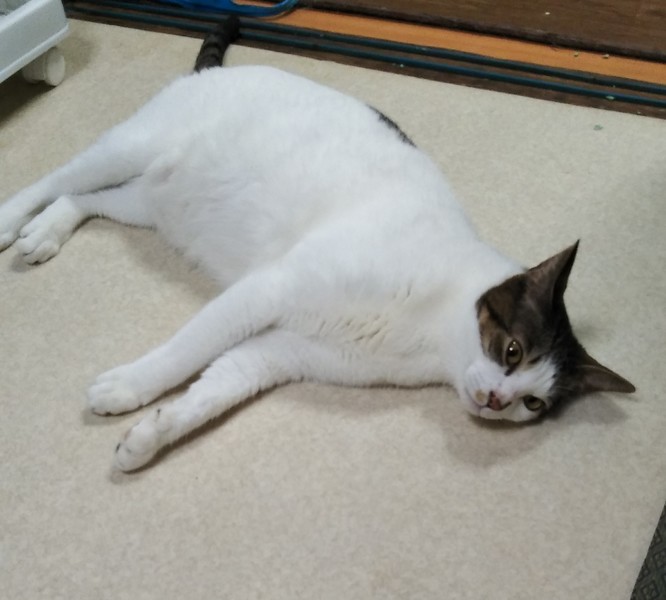 | 特徴(性格など) | キジシロ 長いしっぽ 甘えん坊で人見知りをせず、抱っこをせがみます(=^・^=) 他の子にお顔を舐めてあげるような優しい男前♪ マタタビの匂いでヤバイ状態になります(笑) |
