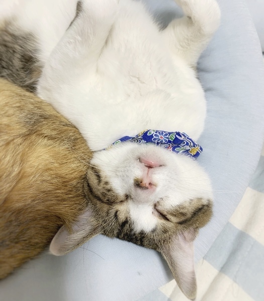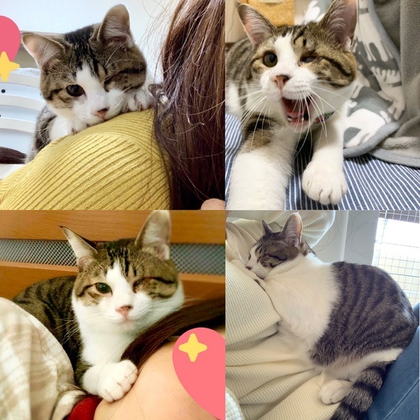 保護時は衰弱と酷い猫風邪だった状態から、なるべく万全の体調で本当のご家族へバトンを渡せる状態までケアを心がけてきました。