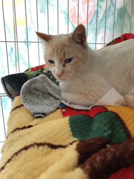 | 特徴(性格など) | ・雑種(シャム系) ・シャム系特有の白ベースのこげ茶です。 ・きれいなブルーの瞳しています。 ・少し怖がりなところもありますが、人慣れして穏やかな性格です。 ・かまってほしいときは、小さく鳴いてアピールします。 ・野良時代は他猫の仔猫を可愛がるような優しさもありました。 ・野良のオス猫に襲われてしまい、一部毛が抜けてしまっている箇所がありましたが、少しずつ生えてきています。 【健康状態】 良好。とても元気です。 ・猫白血病(FeLV):陽性 キャリア持ちの子ですが、発症はしていません。 里親さんに引き渡す際は、再度検査を行い、陰転しているかどうか確認するつもりです。 ・猫エイズ:陰性 ・去勢手術:実施予定(2020/6/上旬) ・駆虫済み |